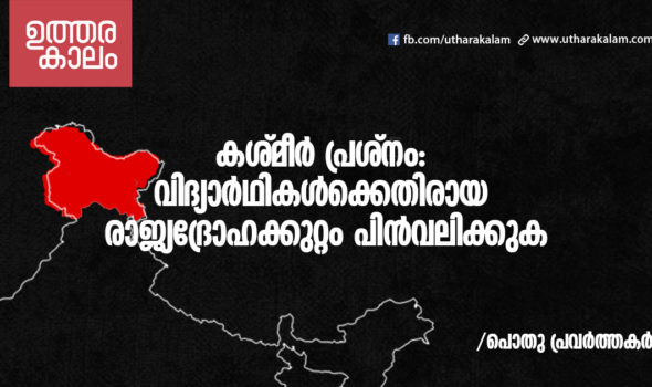 കശ്മീർ പ്രശ്നം: വിദ്യാർഥികൾക്കെതിരായ രാജ്യദ്രോഹക്കുറ്റം പിൻവലിക്കുക